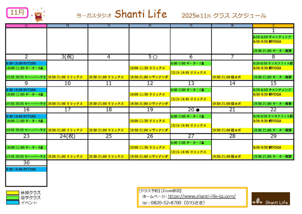 [今月のクラス] オンライン予約はこちらから